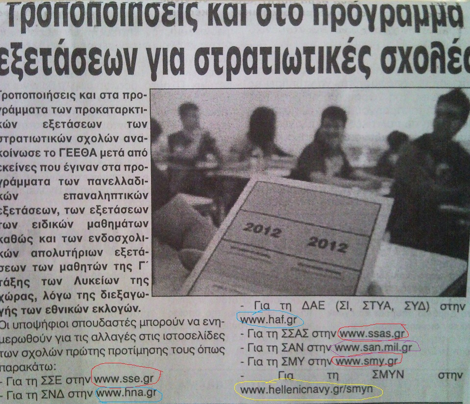 Όταν για επτά όμορες στρατιωτικές σχολές χρησιμοποιούνται τέσσερις διαφορετικές λογικές απεικόνισης των ιστοσελίδων τους, τότε πόση οργάνωση μπορούμε να περιμένουμε από το κράτος αυτό;